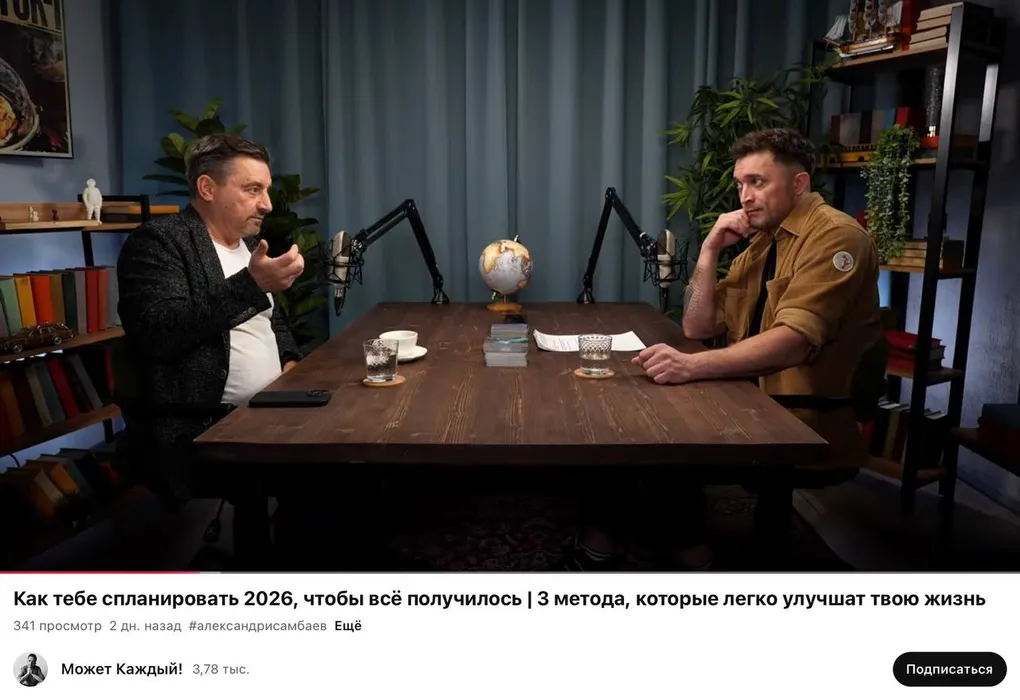 В конце прошлого года Александр Исамбаев взял у меня интервью для своего YouTube канала «Может Каждый!». В нём я рассказал о различных вариантах планирования своей жизни. Это не инструкции «делай раз, делай два». Это метафоры, контексты, коучинговые вопросы, которые помогут вам заглянуть внутрь себя и разглядеть контуры своего 2026 года.
